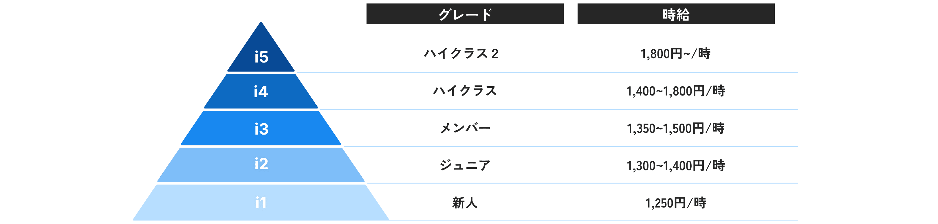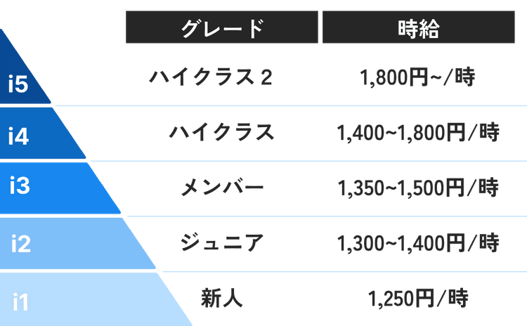 インターン生独自の評価制度があり、それを軸に昇給・昇格を行います。成果を出し、高い評価を得ることで、より良い待遇や新たな挑戦機会を手にすることができます。歴や学年関係なく、実力主義で評価される仕組みになっています。